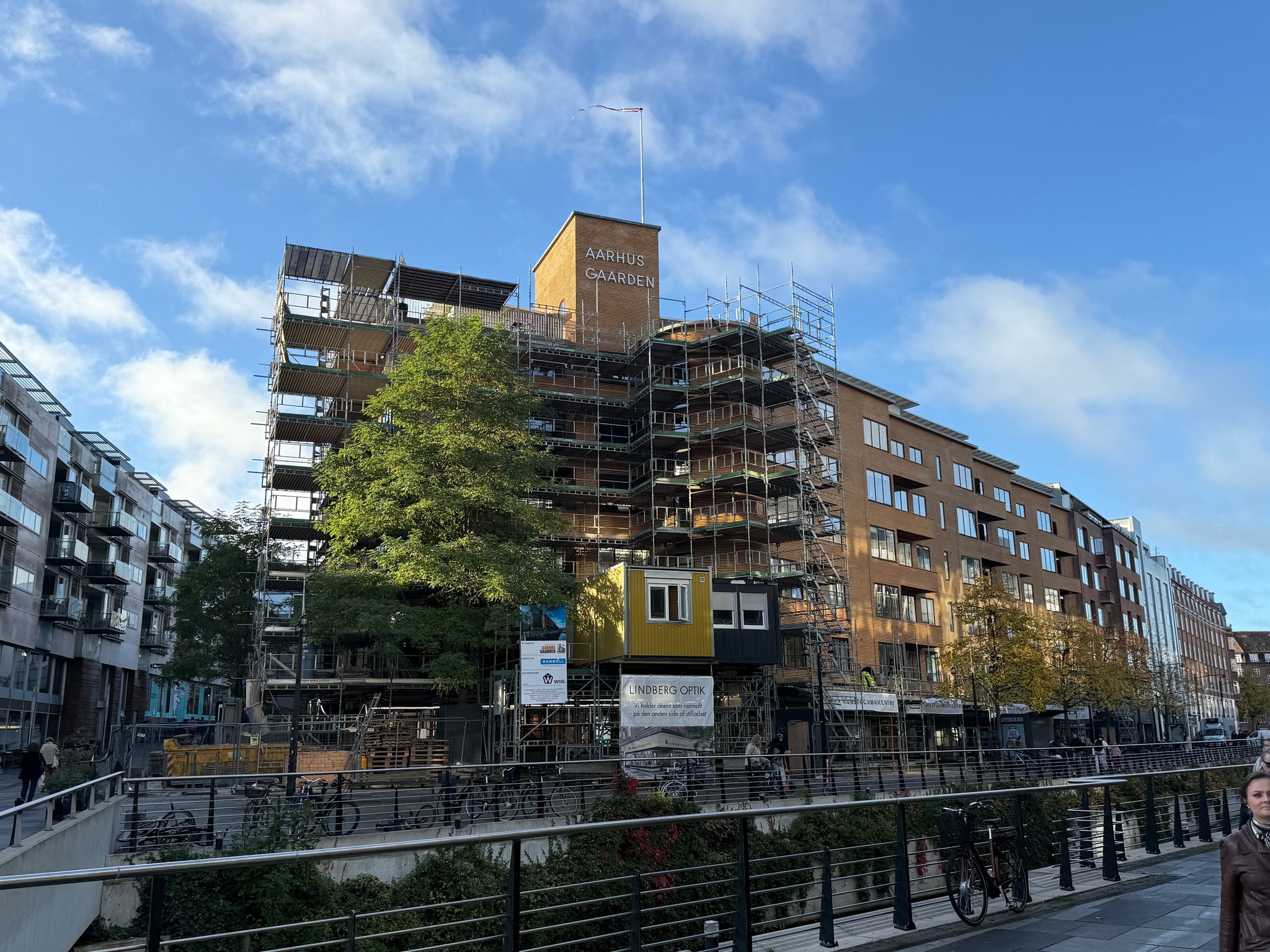 Efter næsten halvandet års dedikeret arbejde nærmer renoveringen af den ikoniske Aarhusgården sig sin afslutning. Vi har varetaget hovedentreprisen på dette spændende og komplekse projekt, strategisk placeret ved åen i Aarhus midtby. Opgaven har krævet, at både logistikken og det faglige håndværk gik op i en højere enhed i et af Danmarks travleste bykerner.