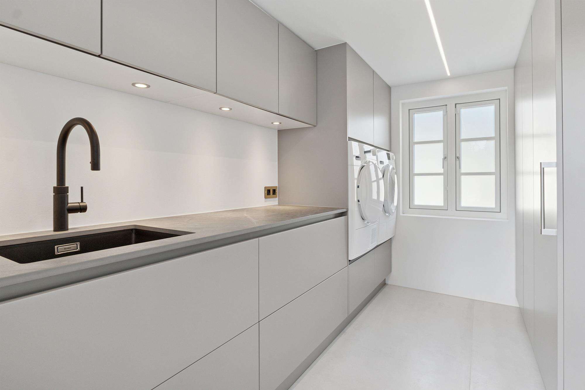 Der er lagt vægt på materialer i høj kvalitet, herunder specialløsninger og eksklusive armaturer, som bidrager til et gennemført og moderne udtryk.